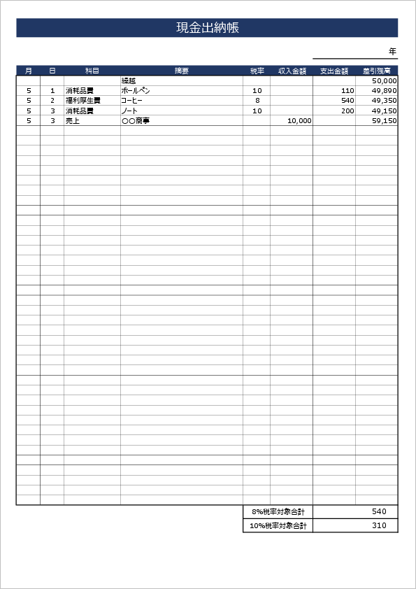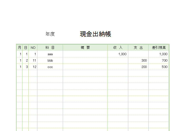 現金出納帳 経理 エクセルテンプレート - 無料ダウンロード。エクセルのテンプレートが充実。