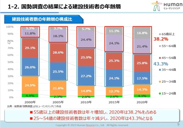 建設業は他産業よりも65歳以上の割合が高く高齢化は進む」建設HRレポート:建設業の人材動向レポート 371 2 ページ- BUILT。