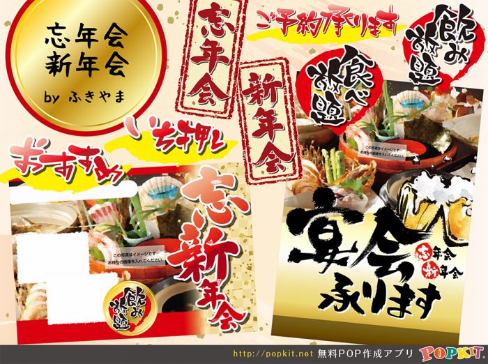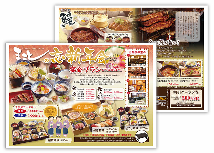 忘新年会版折込チラシ飲食店のチラシデザイン作成・印刷なら飲食チラシ制作.com。