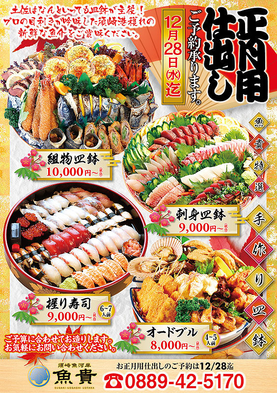 魚貴 忘・新年会チラシ株式会社カミノバ・バサラ ファクトデザイン事業部。