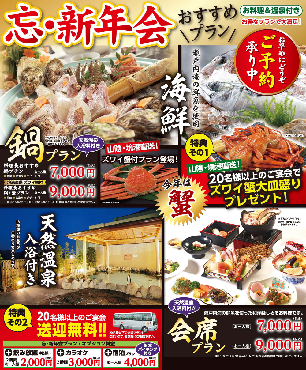 忘・新年会!チラシが完成しました☆ 白子ニューシーサイドホテルのブログ - 宿泊予約は<じゃらんnet>。