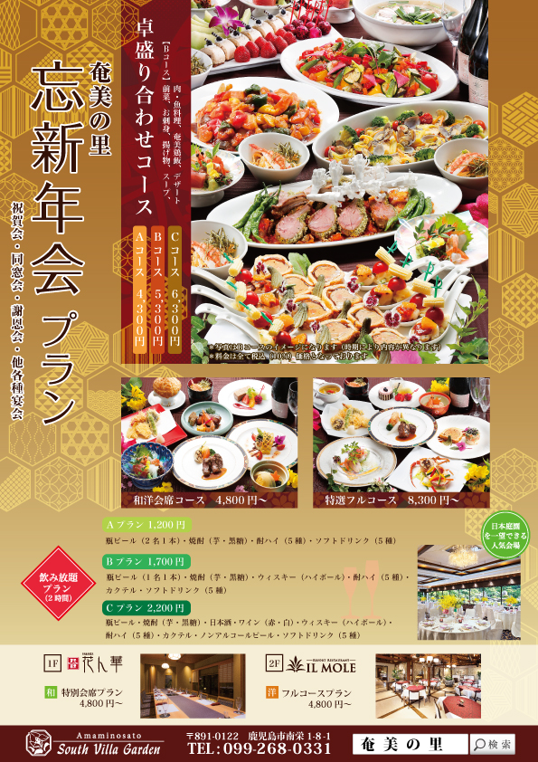 2019年 忘新年会のご案内奄美の里 庭園・大島紬「都喜ヱ門」美術館。