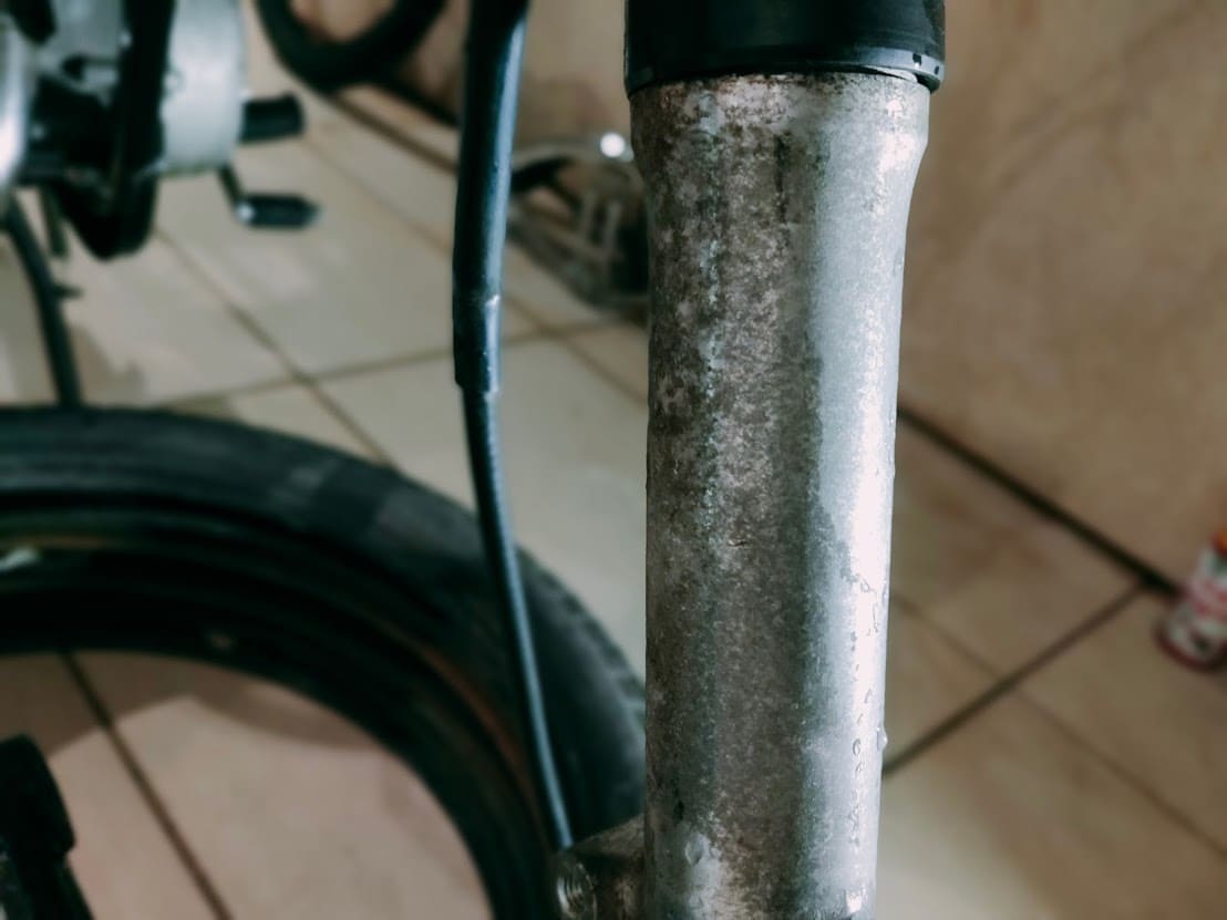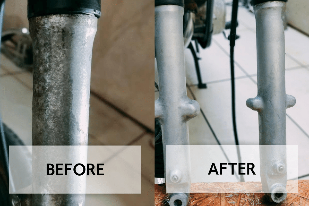 画期的なフロントフォークアウターのサビ取り方法オールドピストン。
