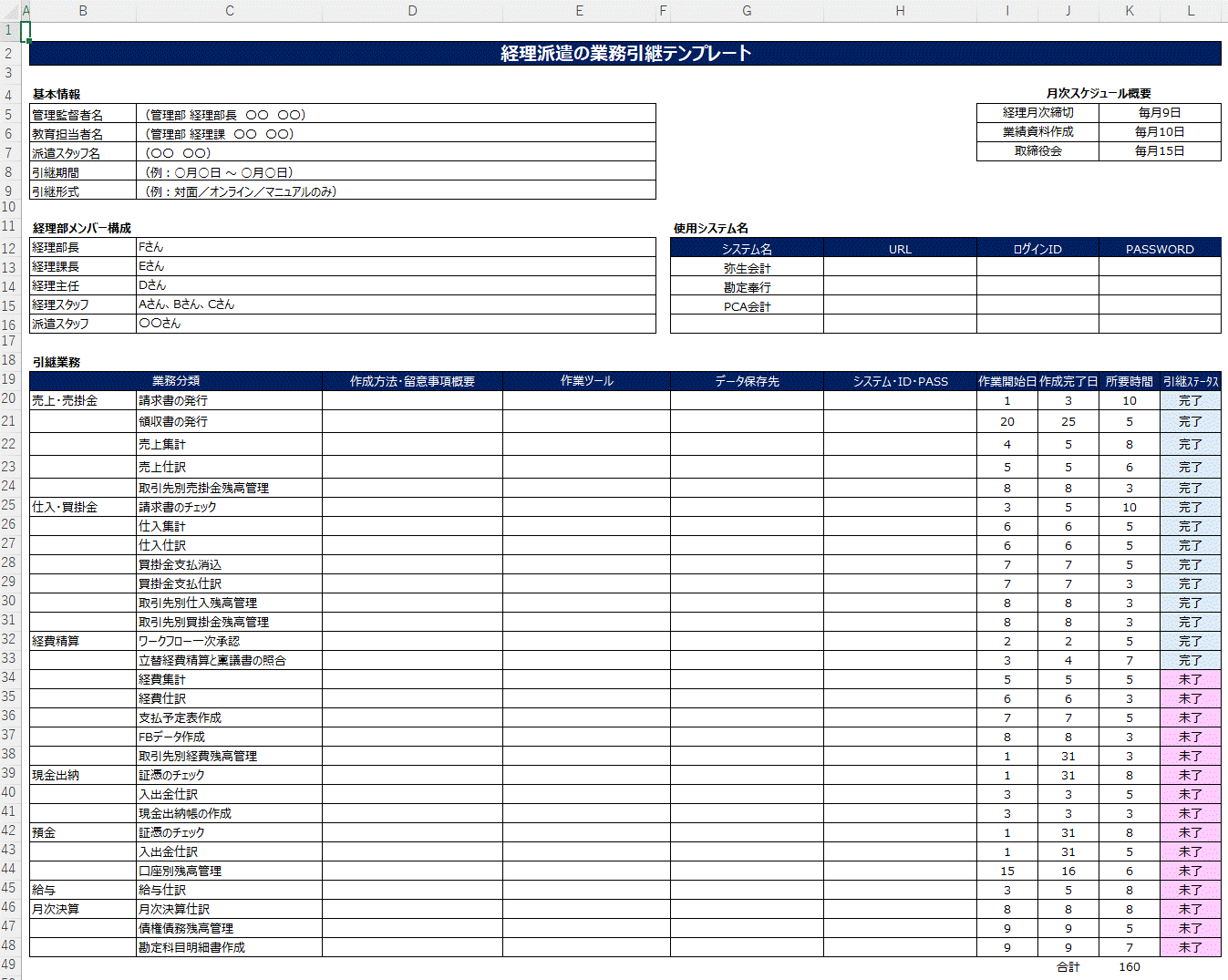 業務引継書:退職や異動などで使うExcelテンプレートを無料ダウンロード - 登録不要のフリーテンプレート。
