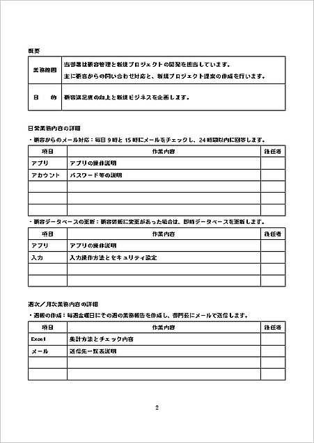 業務引継書テンプレート 無料 ひな形・書式・例文つきExcel Word PDF対応Bizroute。