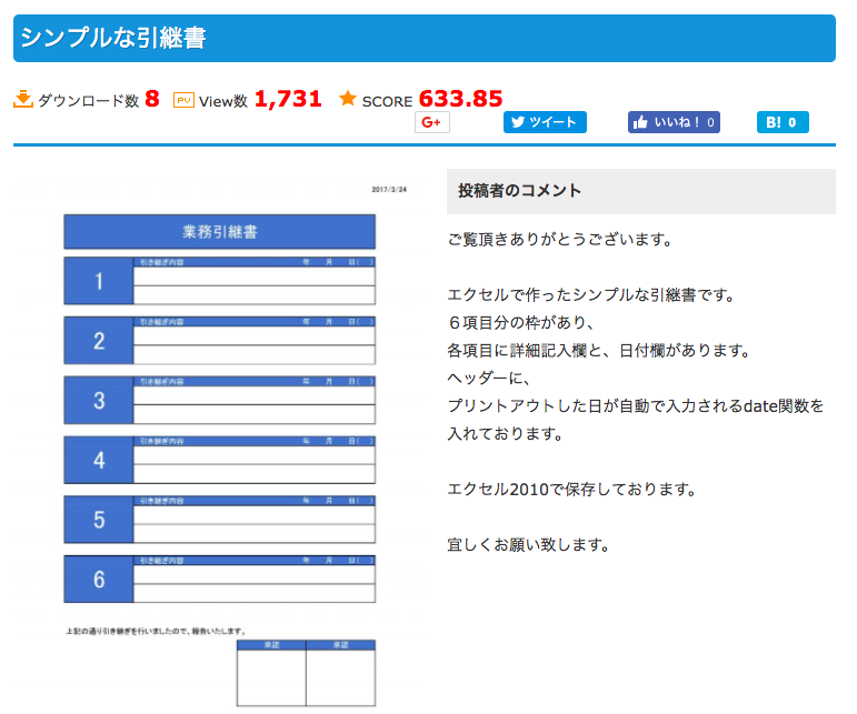 無料でダウンロードできる業務引継書のテンプレート!エクセル形式あり!テンプレボール。