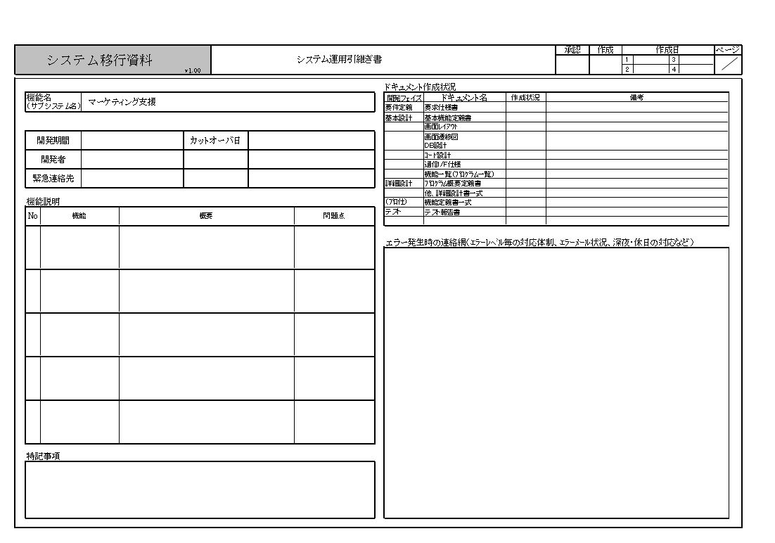 書式テンプレート: 引継ぎ書 : 無料書式テンプレート。