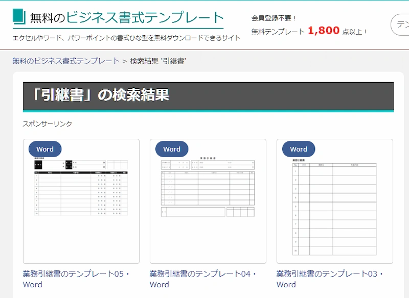 引継書のカテゴリ一覧無料のビジネス書式テンプレート。
