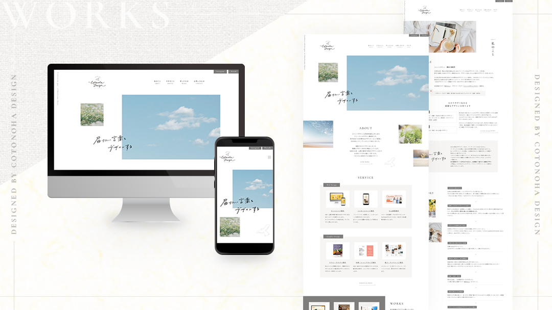 制作実績 フリーランスWebデザイナーのポートフォリオサイト*デザイン・こだわりを徹底解説 - コトノハデザインブログ。
