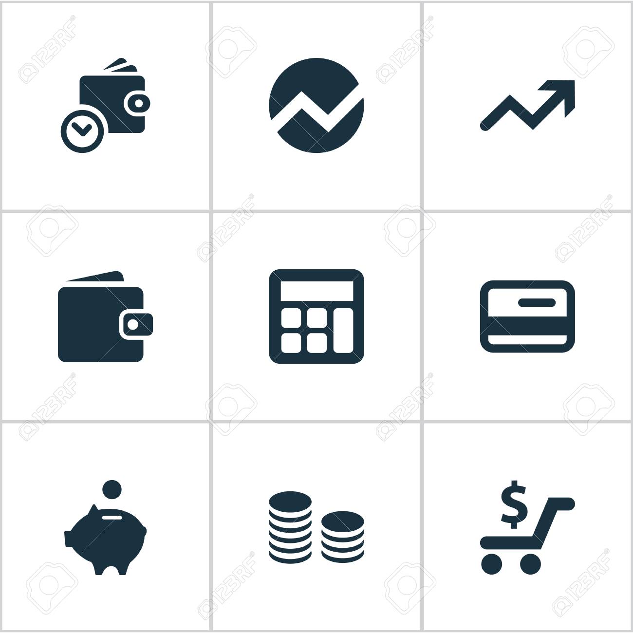 簡単な銀行業務のアイコンのベクトル イラスト セット。制御要素の統計量、率、札入れ、他の同義語、進行し、現金します。のイラスト素材・ベクターImage 74239038。