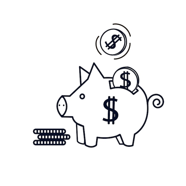 銀行預金の簡単なベクトルイラストは貯金箱のお金を節約するコインPremiumベクトル素材。