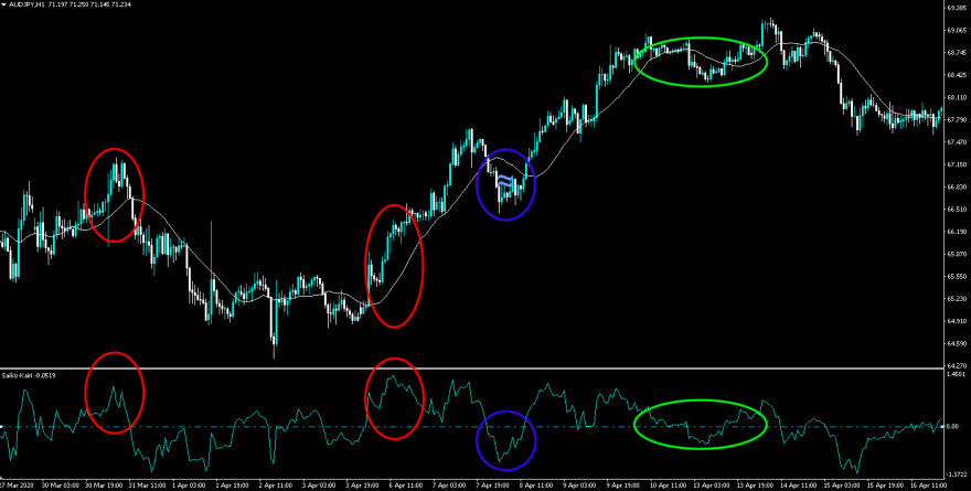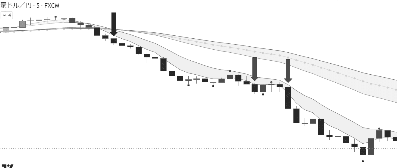 豪ドル円 1時間足 mBDSR 移動平均線2本フィルター の戻り売りサインと押し目買いサイン - 押し目買い・戻り売り RCI3本ライン+BODSORmBDSRの活用例など - 投資ナビ+ - 世界のトレード手法・ツールが集まるマーケットプレイス - GogoJungle。