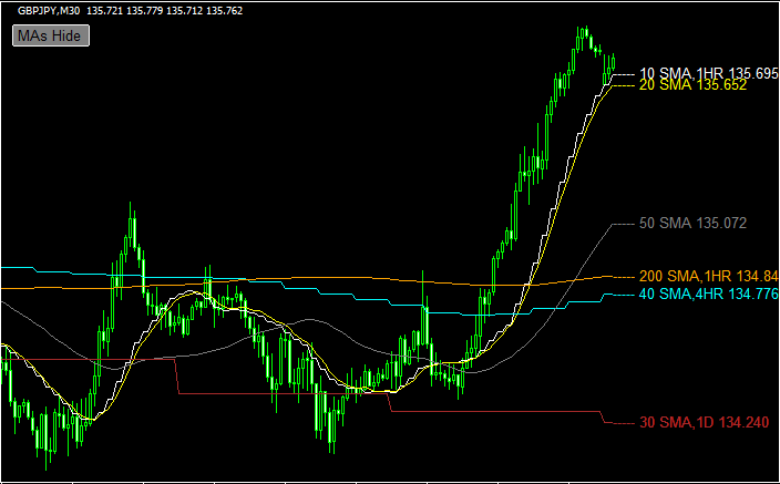 MT4、MT5用のマルチタイムフレームの移動平均線インジケーターTitan FX タイタンFX 取引戦略研究所。