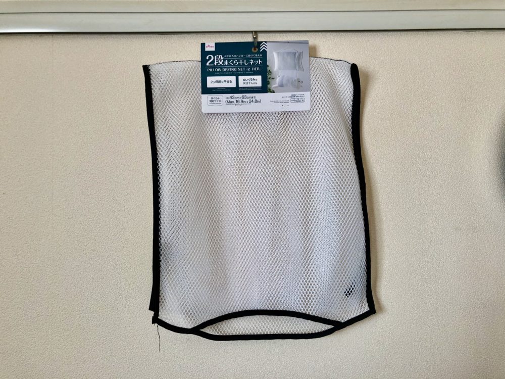 100均 ダイソーの2段まくら干しネットが便利!枕もぬいぐるみもOKゆる育ライフ。