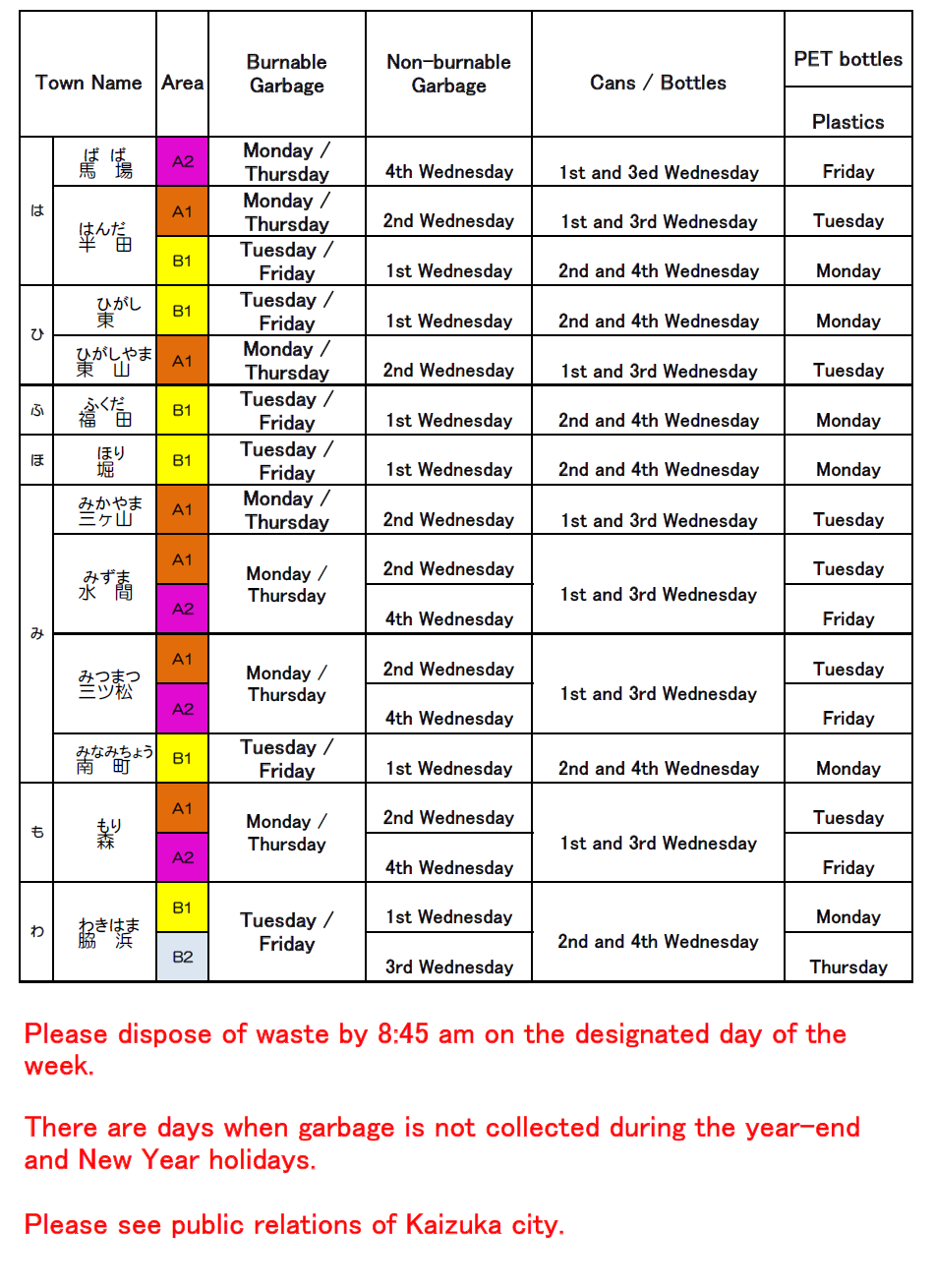 How to take out the garbage英語版ごみの出し方- 岸和田市公式ウェブサイト 廃棄物対策課。