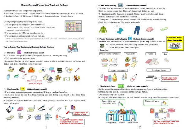 How to sort and put out your trash and garbage 家庭ごみの分別・出し方:英語翻訳版-愛媛県新居浜市ホームページ四国屈指の臨海工業都市。