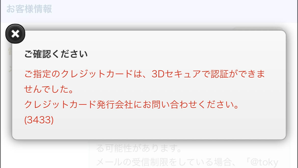 クレジットカード3dセキュリティ認証エラーTikTok。