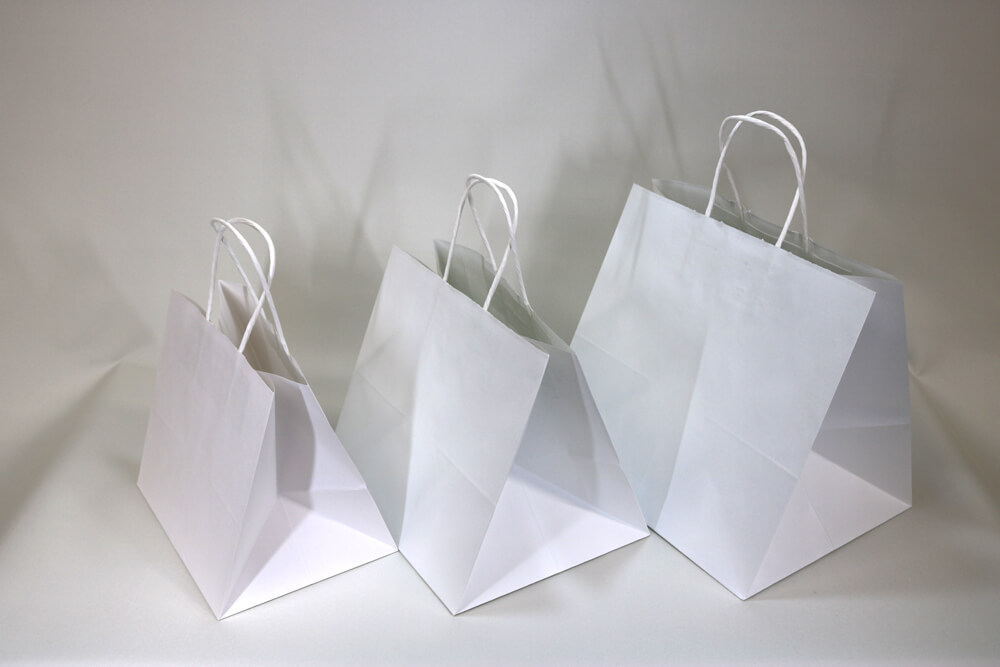 手提げ紙袋 マットフィルム貼り・ハッピータックタイプ平紐 白 マチ広 1セット 180枚:90枚入×2箱スーパーバッグ オリジナル - アスクル。