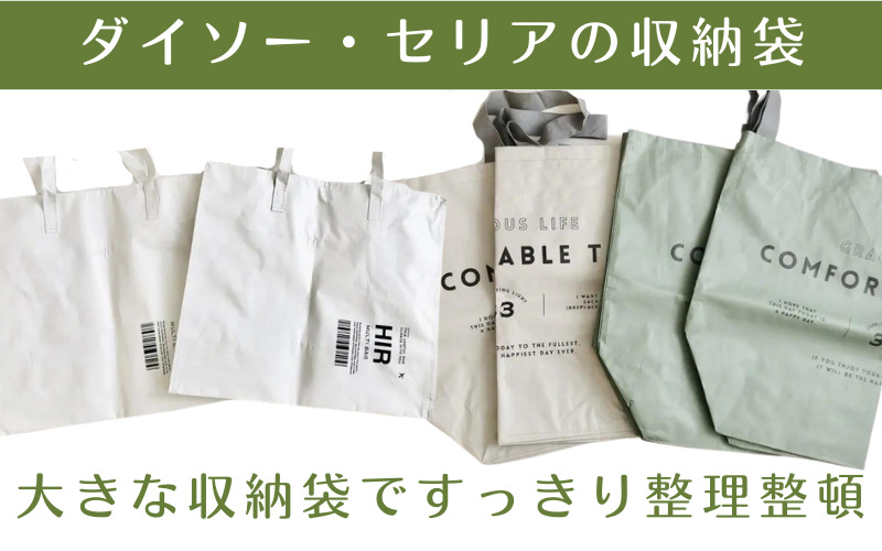 大きい収納袋 100均 セリア・ダイソー のシンプルおしゃれな袋ですっきり整頓してみたくらしとふわっと100均ブログ。