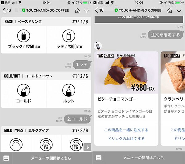 LINEでコーヒーをお気に召すまま我が儘に注文~話題のTOUCH-AND-GO COFFEE体験~cloud.config Tech Blog。