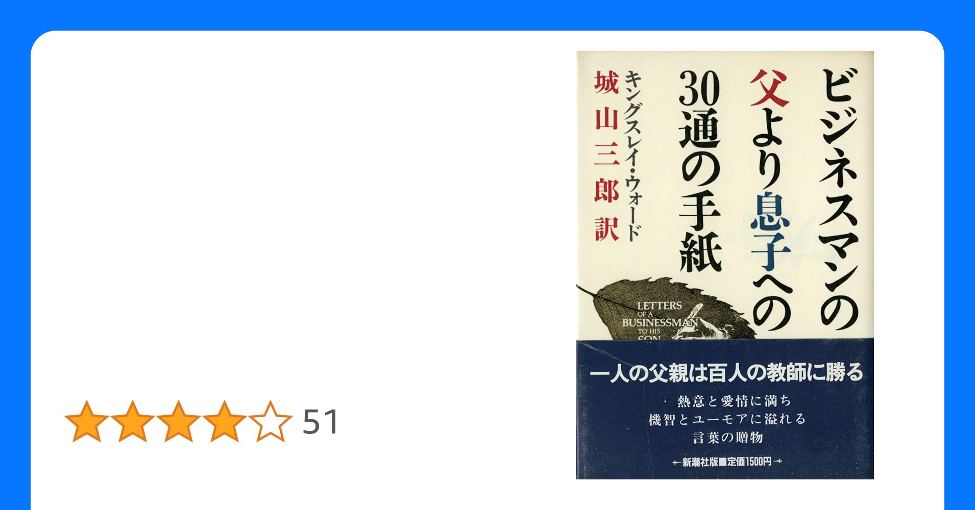 ビジネスマンの父より息子への30通の手紙 キングスレイ・ウォード 著 ; 城山三郎 訳古本、中古本、古書籍の通販は「日本の古本屋」日本の古本屋。