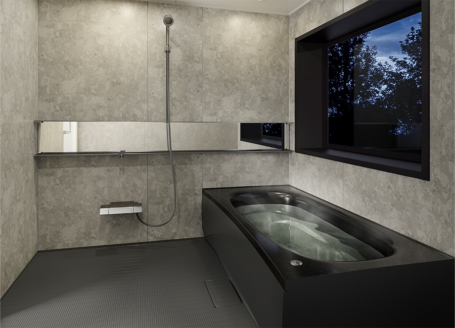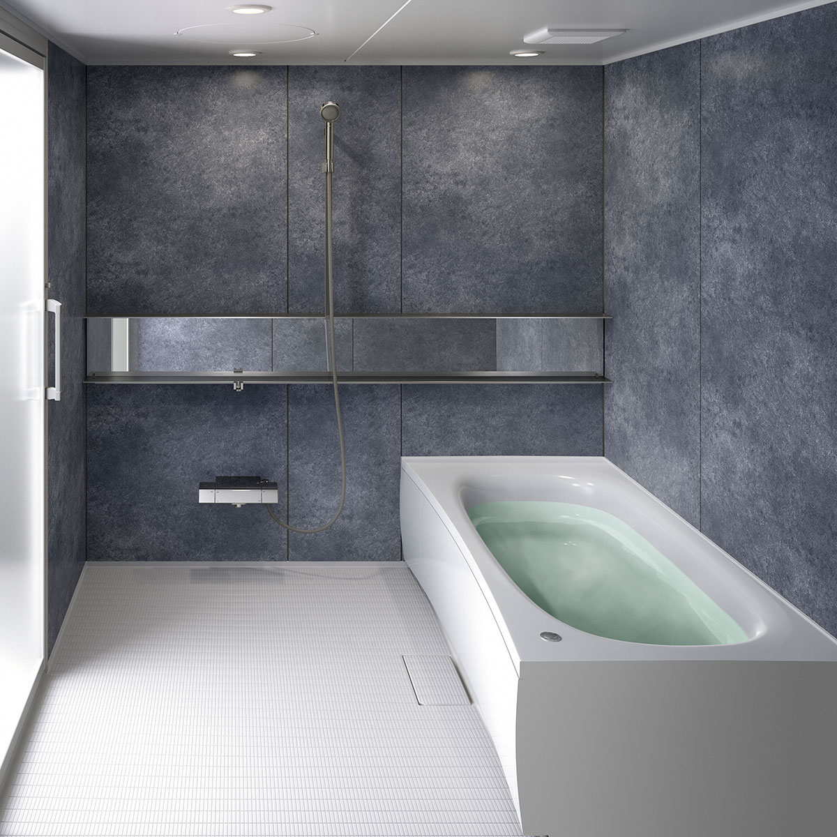 褒められるシステムバス 人とは少し違う、 自分だけのバスルームにしたい という方に人気のシステムバスを ご紹介します。 システムバスノウム は、なんといっても壁のデザインが特長。 当社らしいイタリアのデザインタイルや モダンなコンクリート調など 他にない。