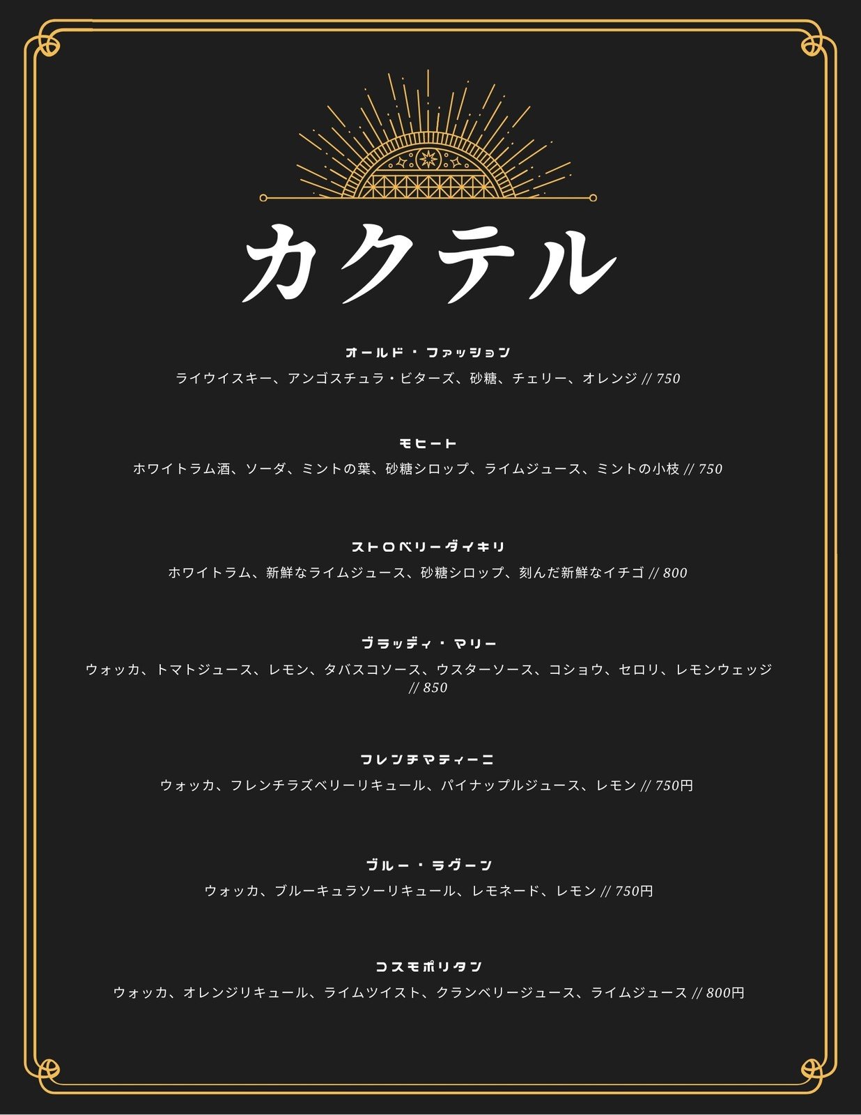 バーメニューテンプレート・パブ・居酒屋メニュー表テンプレートでおしゃれなメニュー表デザインを無料で作成! Canva。