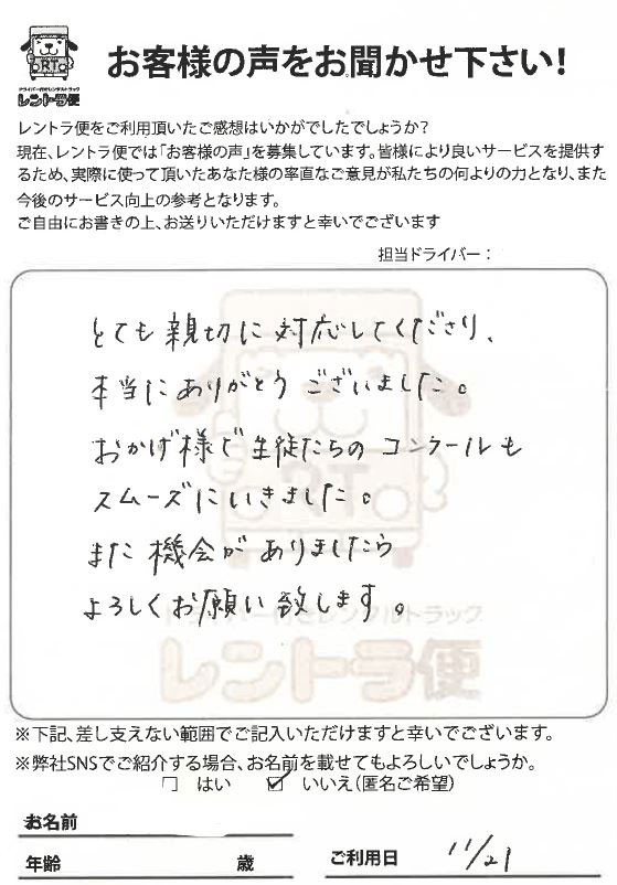 レントラ便をご利用のお客様の声運転手付きレンタルトラック レントラ便 各種運搬や単身引越等に。