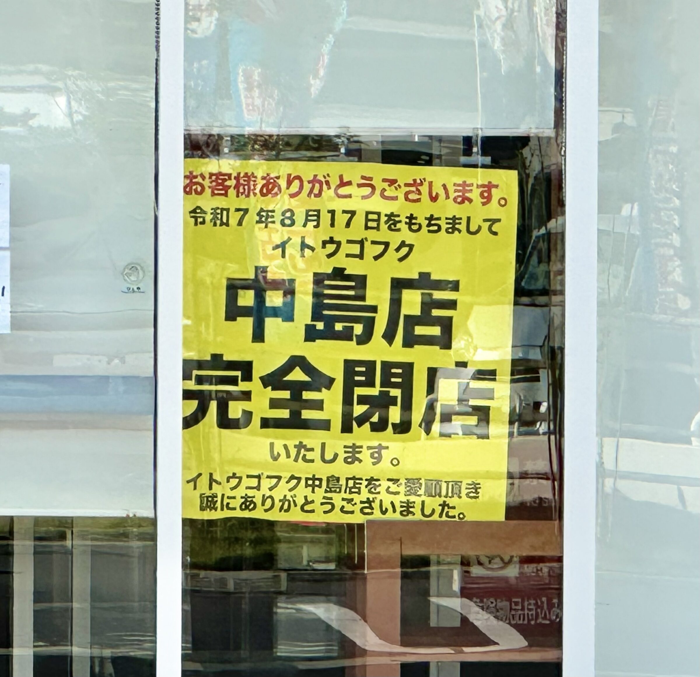 倉敷市 市営球場ちかくの「イトウゴフク中島店」が閉店してる。
