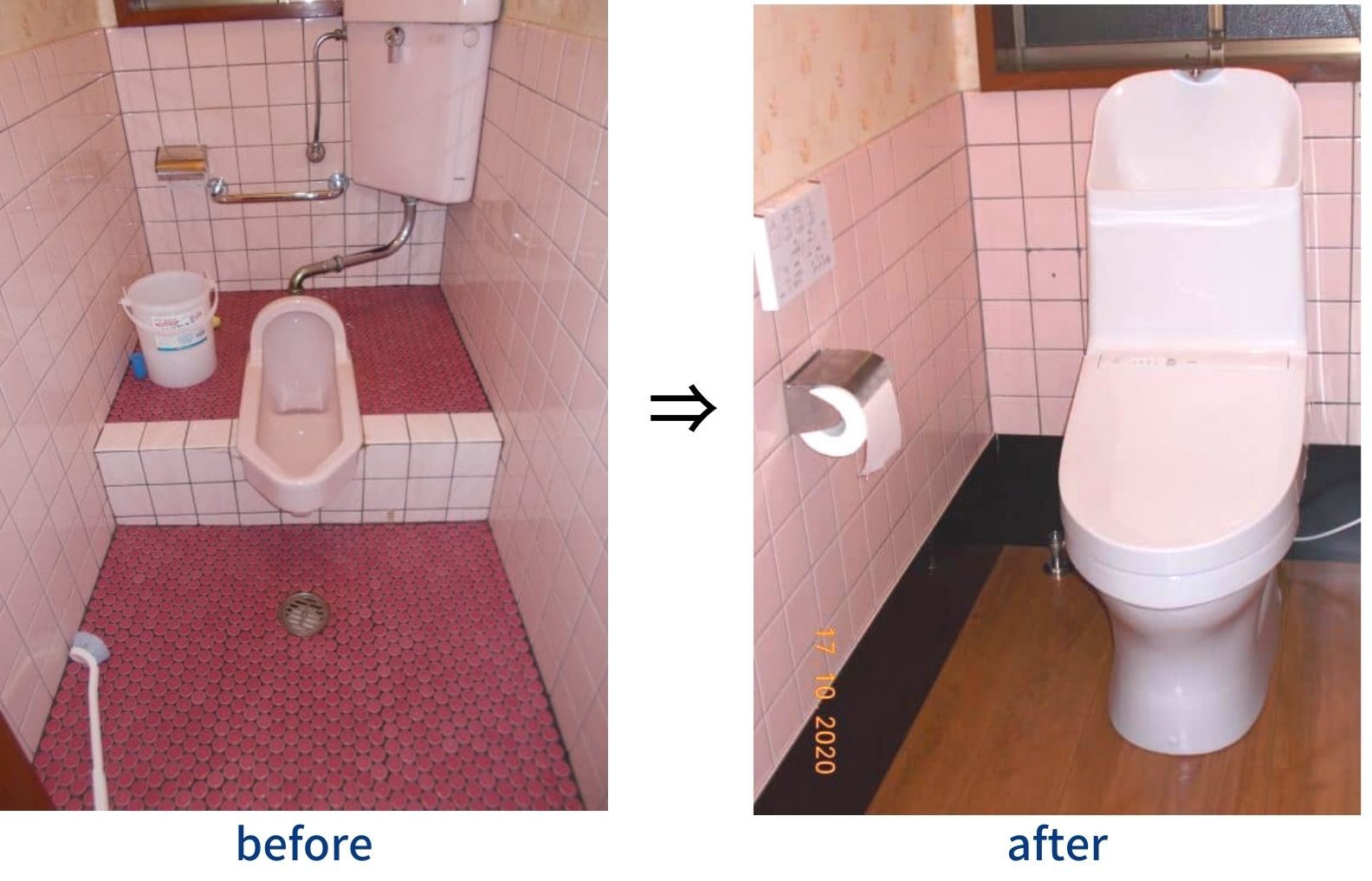 和式トイレから簡易洋式トイレを経て、本格的にリフォームトイレ・ウォシュレットの施工事例クラシアン。