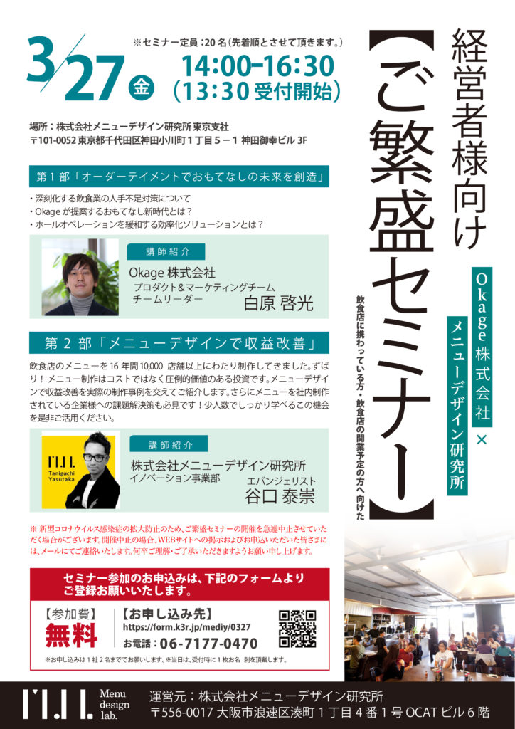 途切れない注文で売れる流れをつくる!成果を出す飲食店の店内デザインセミナー – メニューデザイン研究所セミナ。