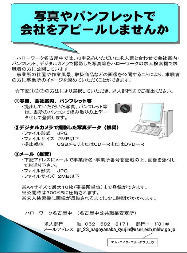ハローワーク「写真やパンフレットで求職者に会社をアピールしませんか?」労務ドットコム。
