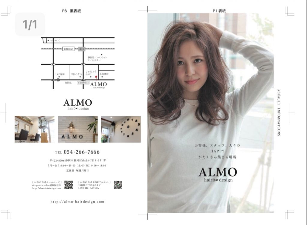 求人用パンフレット作成静岡市美容室almo アルモヘアーデザイン。