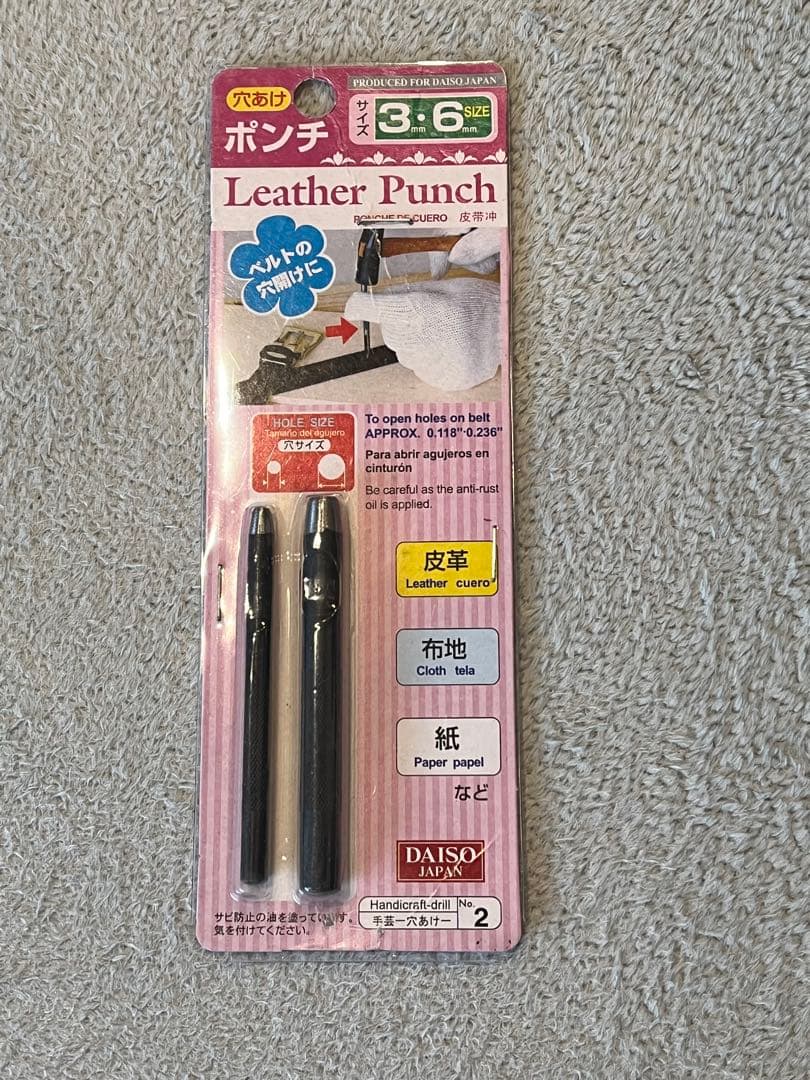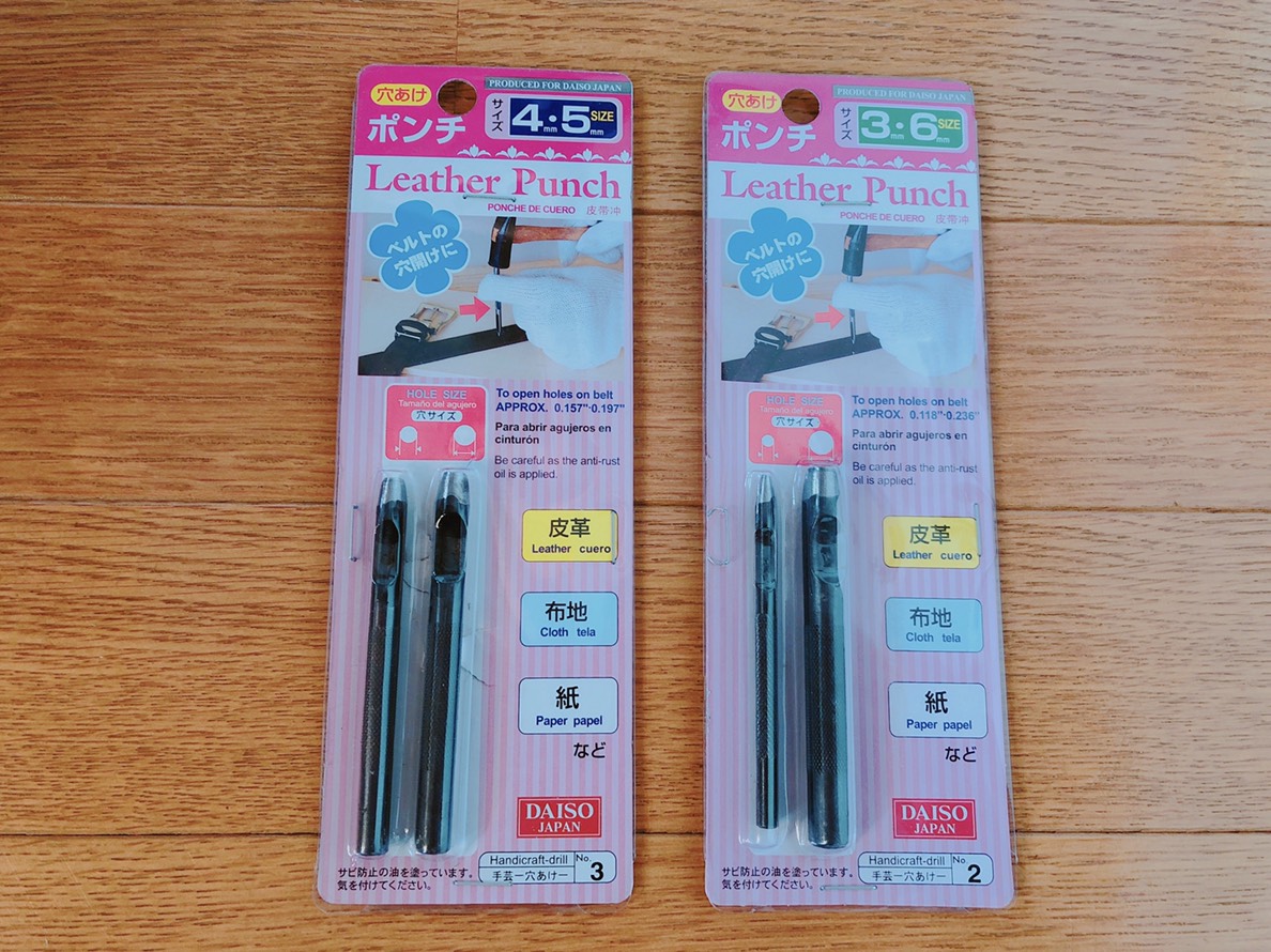 ダイソーの穴あけポンチを使ってベルトの穴を開けたよ!¥108で不便を改善できて嬉しい♪こころ躍る。
