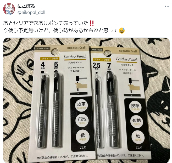 セリアの穴あけポンチの売り場はどこ?使い方やベルトも開けられるかも!rodial。
