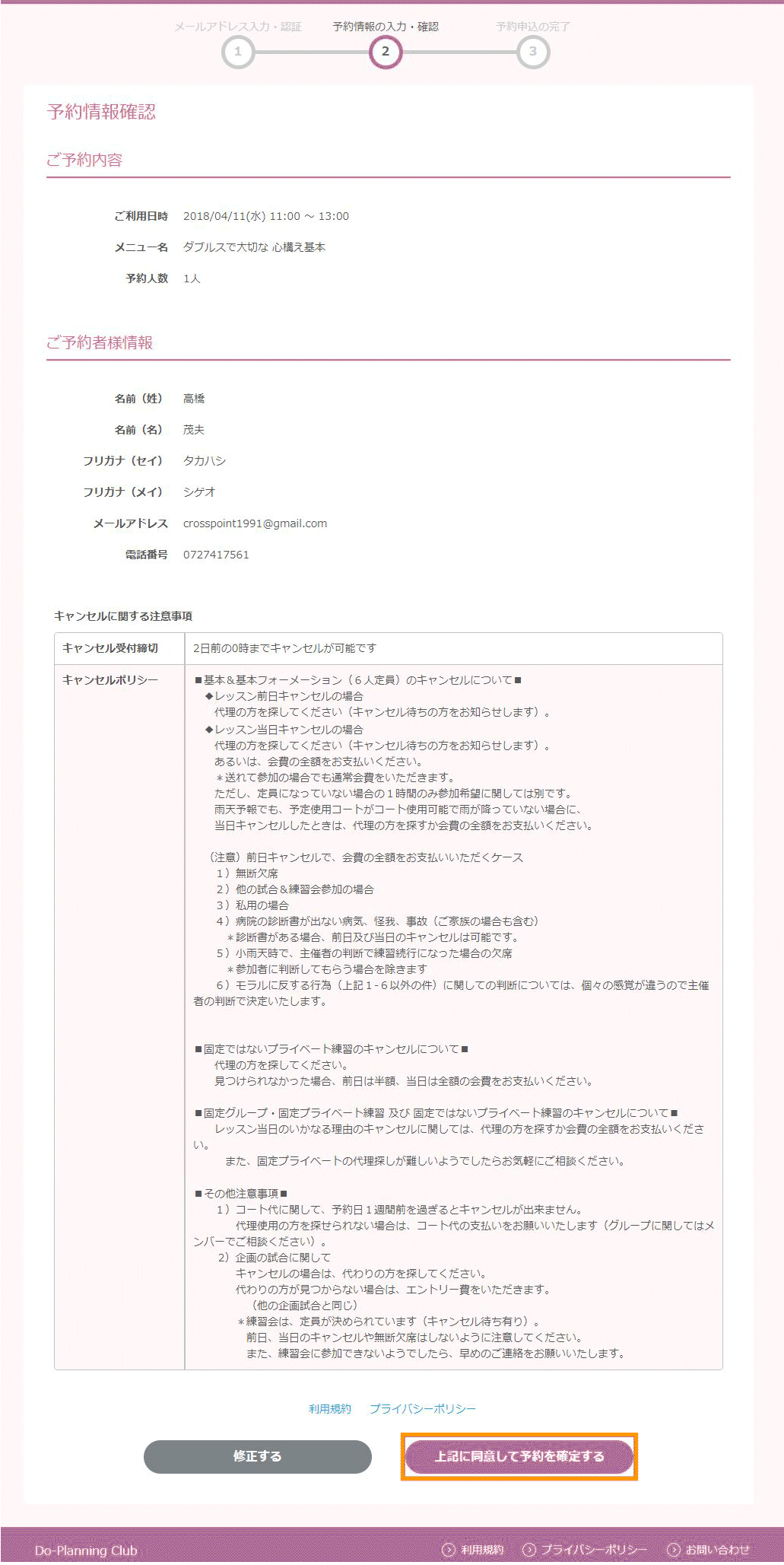 Do-Planning Club Web予約受付ページからの予約手順 – Airリザーブ。