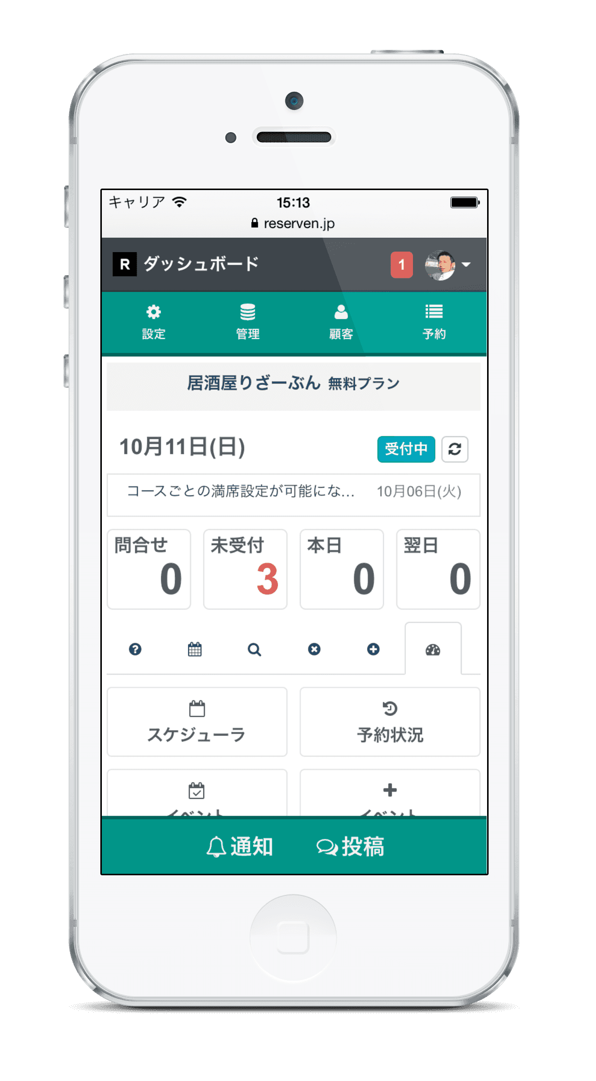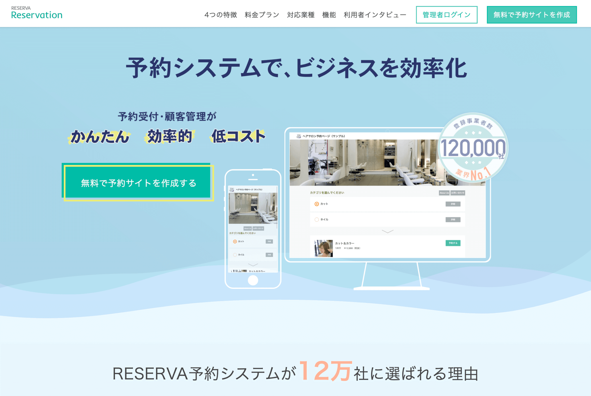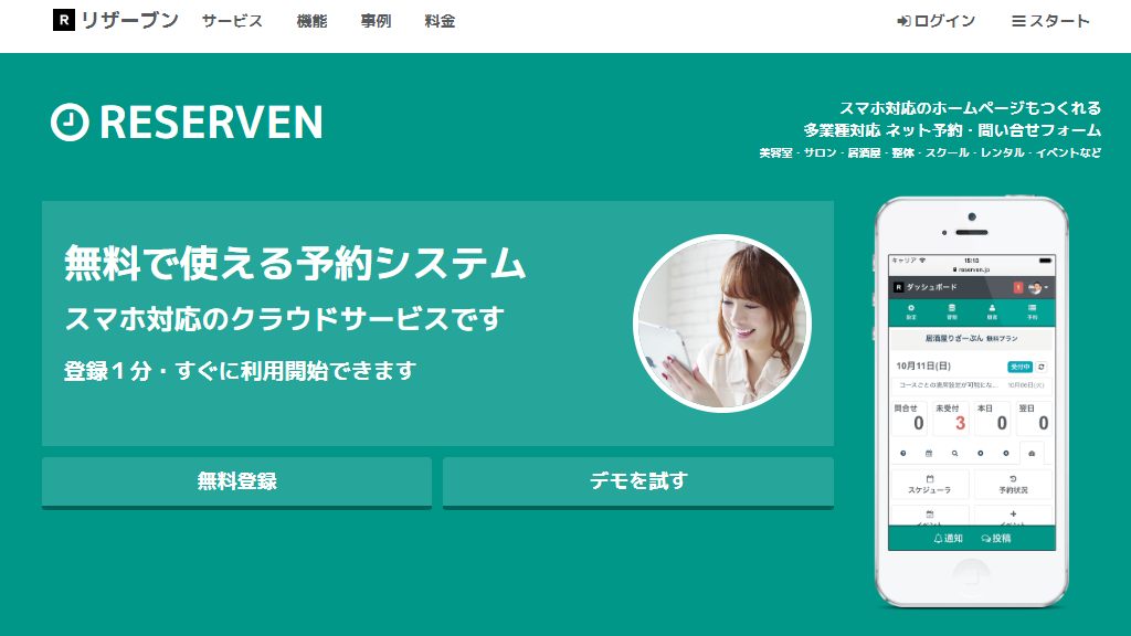 無料ネット予約システム「リザーブン」スマホで予約管理。
