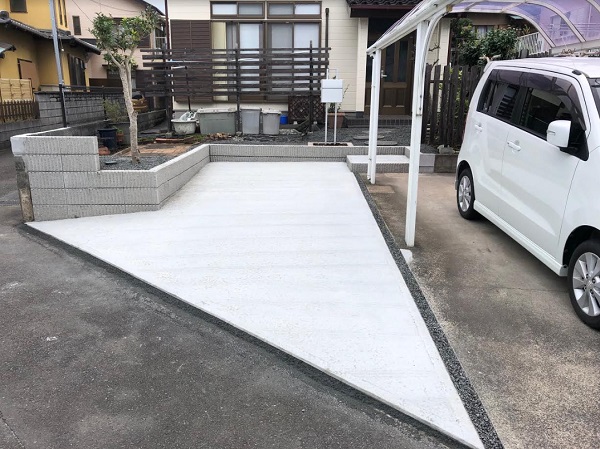 静岡県東部:土間コンクリートの駐車場の増設工事を費用を交え紹介します静岡・神奈川県の新築外構工事の設計・施工のМKプランニング。