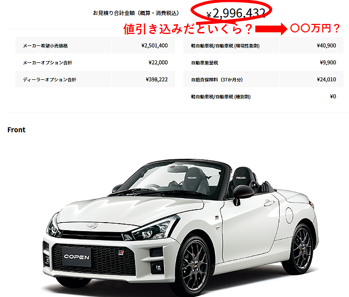 ダイハツ コペンの新車乗り出し価格は?見積もり書を公開夢あるカーライフ 夢カー。