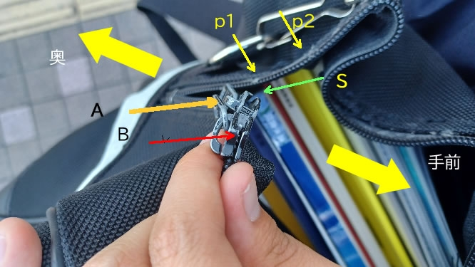画像解説 片方外れたファスナーを簡単にはめるテクニック。外出時にもすぐ直せる方法。