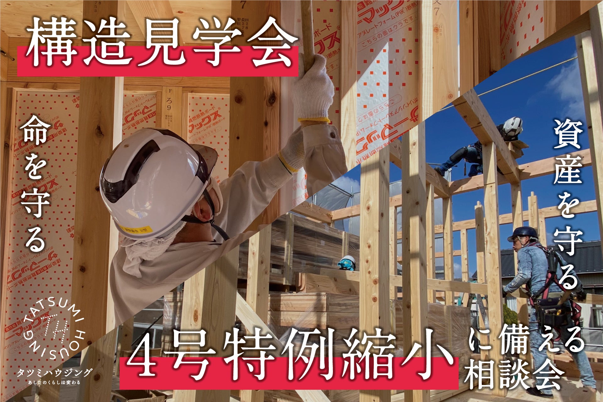 2025年4月1日より建築基準法が改正!4号特例縮小について正しく知るための相談会を開催 ~同日、建築中の建物を見学できる「構造見学会」も実施~株式会社タツミハウジングのプレスリリース。
