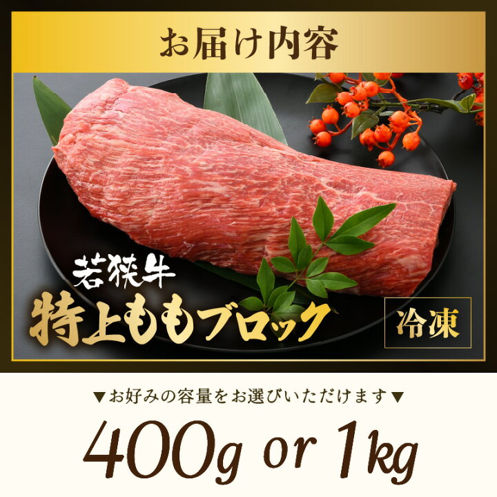 楽天市場ふるさと納税若狭牛特上ももブロック選べる内容量:400g1kg若狭牛 国産和牛 黒毛和牛 黒毛和種 ブランド牛 和牛肉 牛 牛肉 モモ肉 ブロック 赤身 国産 冷凍: 福井県坂井市。