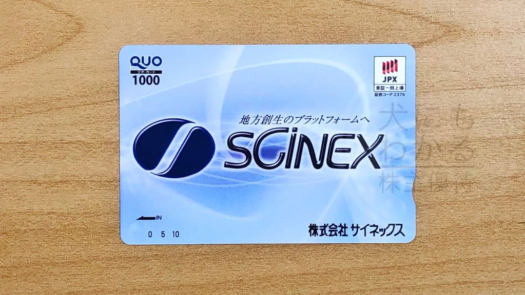 含み損2万円以上のサイネックス 2376 から株主優待クオカード1,000円分が到着!お金の手帳。