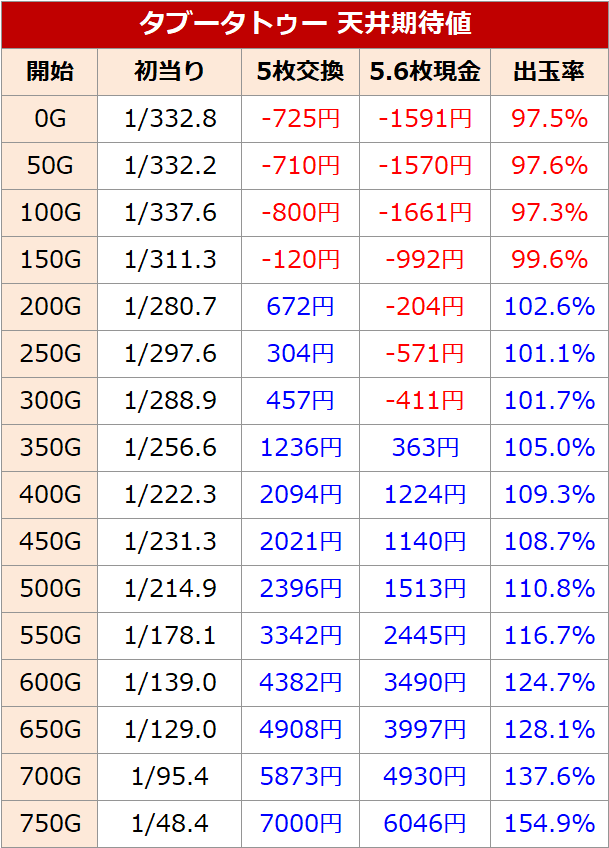 タブータトゥー天井期待値 ゾーン期待値 狙い目 やめどき 有利区間ランプ 朝一リセット期待値見える化。