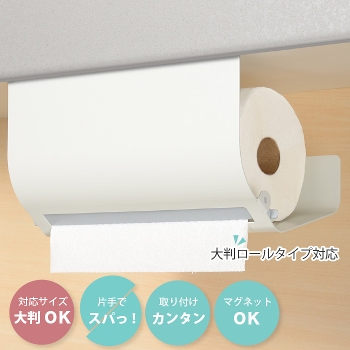 キッチンペーパーハンガー ラージ 大判 片手でスパっと切れる ペーパーホルダー キッチンペーパーホルダー キッチンペーパー収納 キッチンペーパースタンド片手で切れる 燕三条 マグネット キッチン雑貨 おしゃれ グレー ホワイト 日本製。