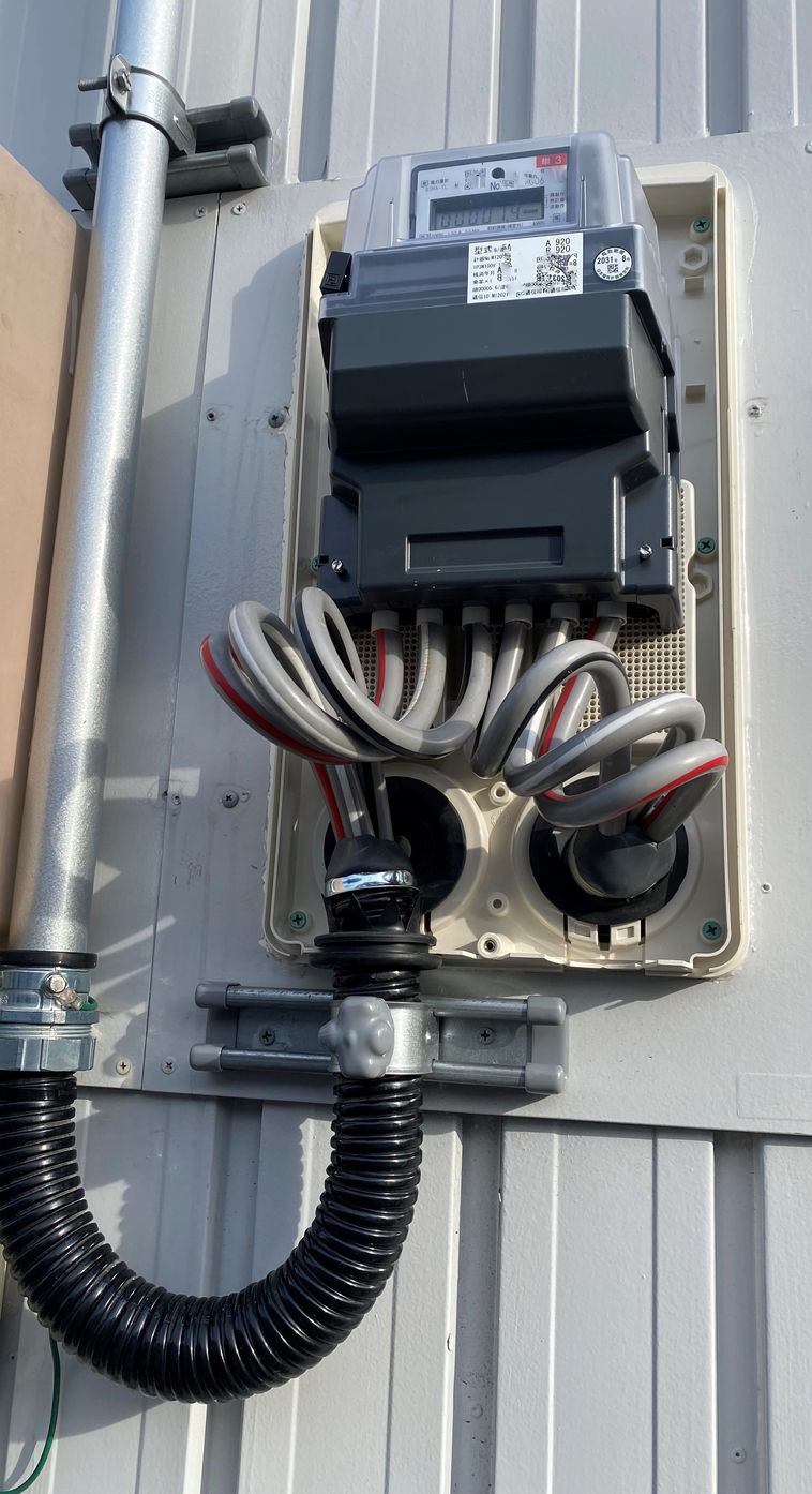 東大阪市にて電気使用申請、引き込み工事を行いました大阪電気工事.com エアコン取付け、コンセント工事、照明工事、LAN配線工事・通信工事OK。