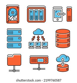 ネットワーク ファイル共有と Nas サーバー アイコンセット線スタイル ベクトル - アイコンのベクターアート素材や画像を多数ご用意 - アイコン,ネットワークサーバー, バックアップ - iStock。