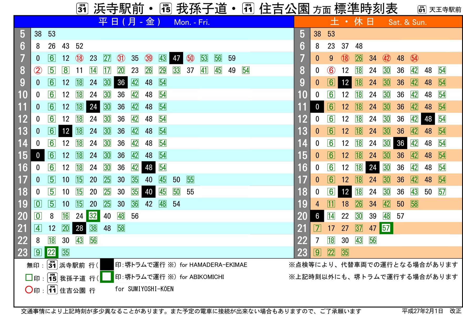 Aqueous terminal>阪堺電車>運用>駅別時刻表。