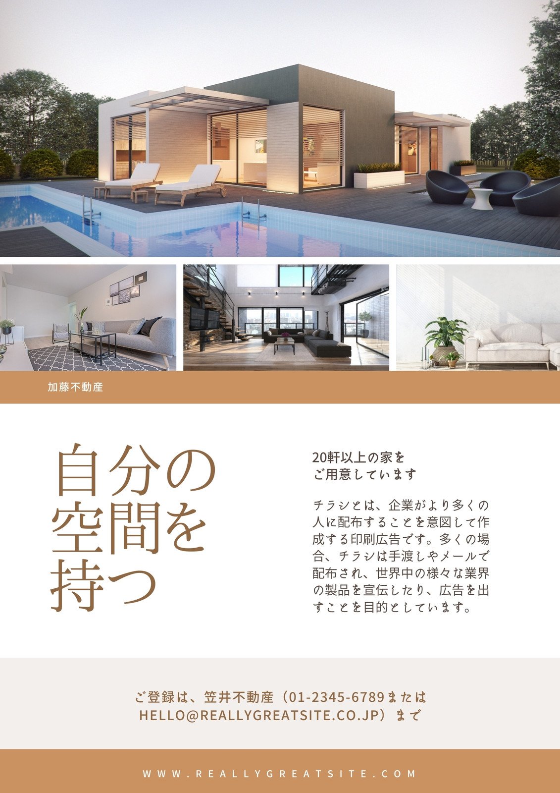 不動産チラシテンプレートでおしゃれなフライヤーデザインを無料で作成!Canva。