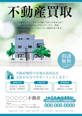 不動産買取_特売・キャンペーン・商品紹介チラシ・フライヤーの無料デザインテンプレート - ネット印刷グラフィック。